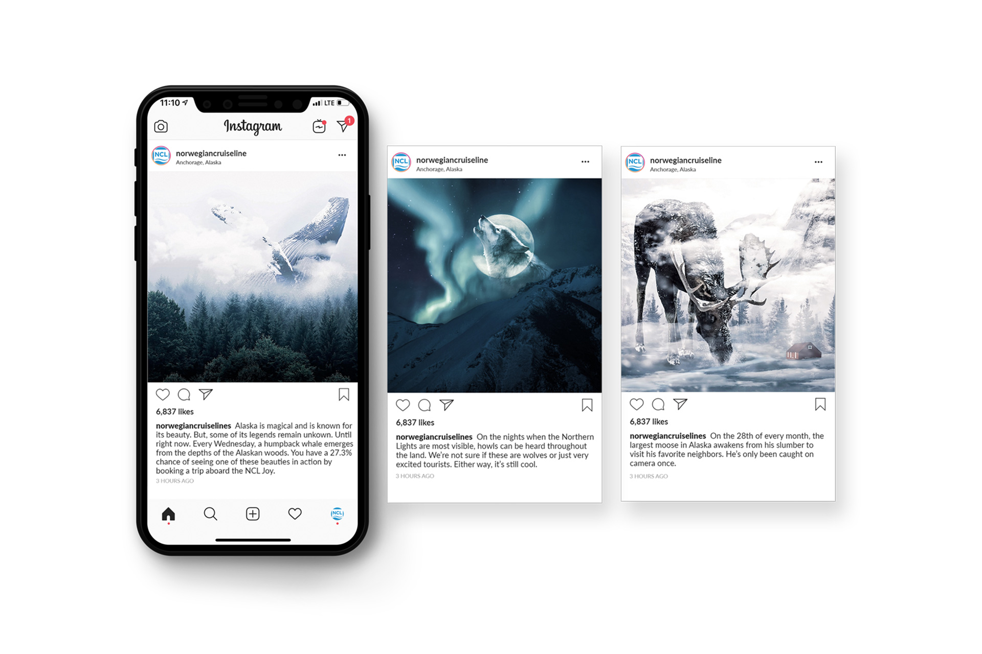 NCL will highlight old Alaskan folklore through Instagram sponsored posts and stories, directing viewers to Norwegian Joy's website.