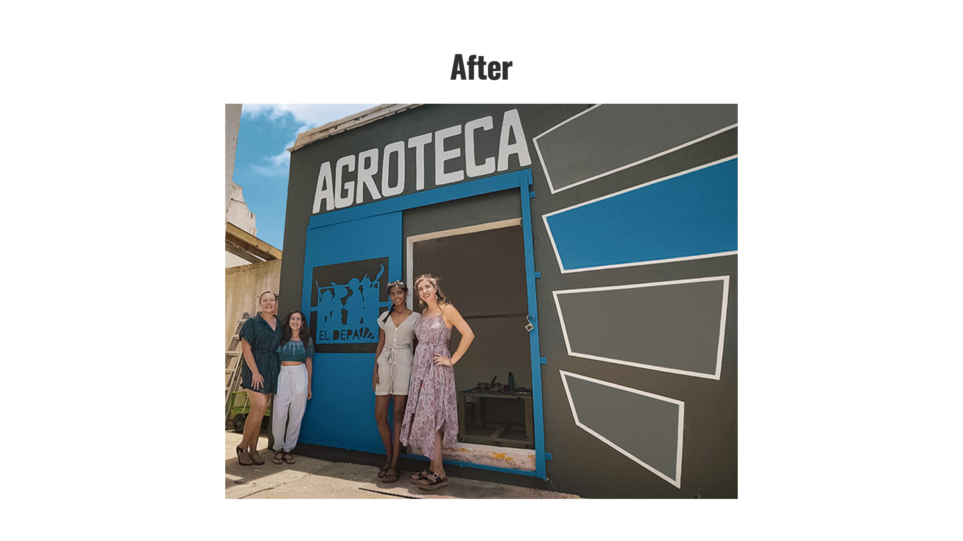 Our team remodeled a space in collaboration with La Tornilleria, a local tool shop. This served as an area for farmers to rent tools, read books on sustainable farming, and swap organic heirloom seeds. See below for some below and after shots of the resource library, named Agroteca. Made with blood, sweat, and/or tears.